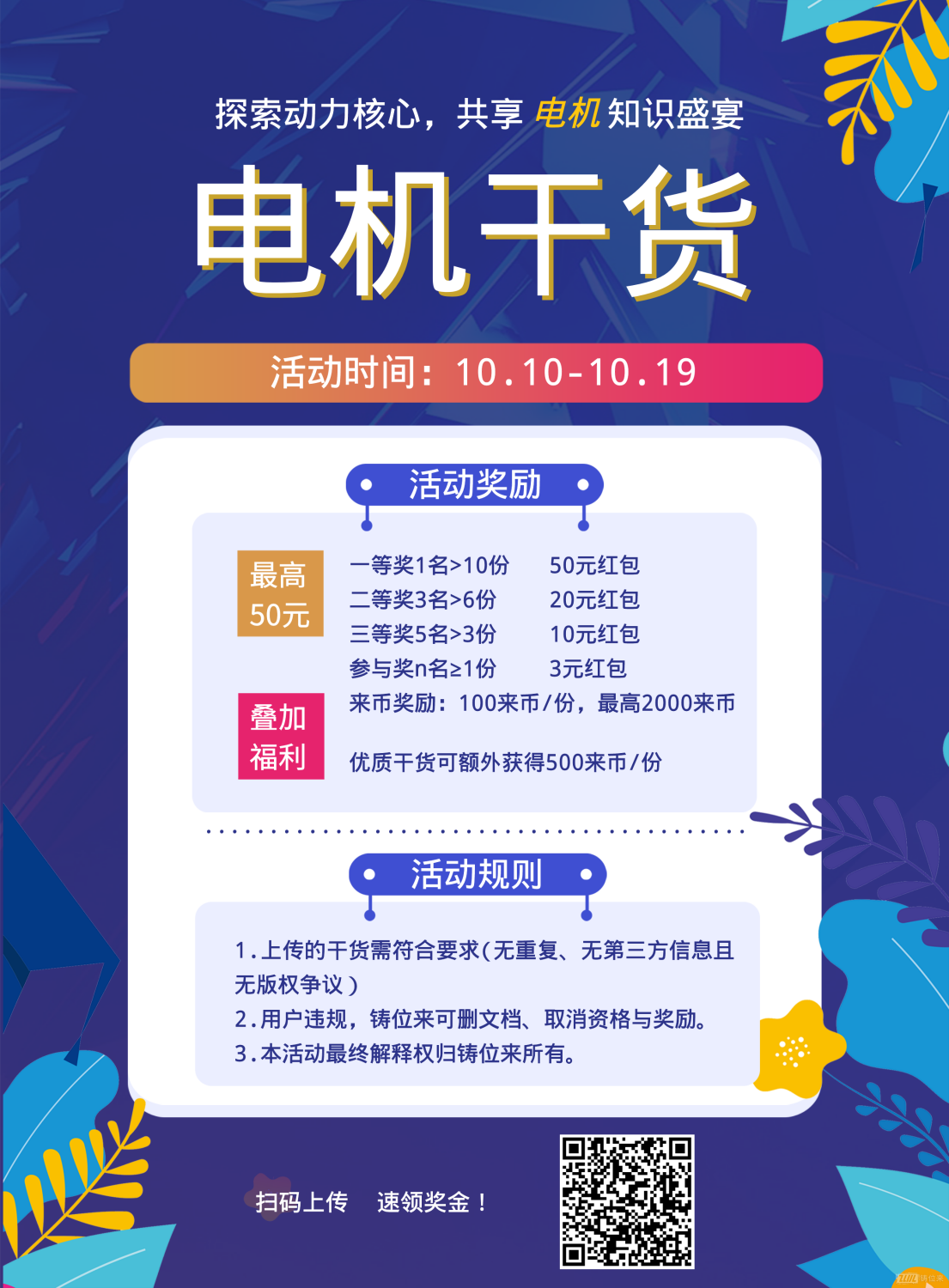 而现在,新的知识探索之旅即将开启!从10月9日至10月19日,我们将聚焦于【电机领域】,开展一场别开生面的技术干货征集活动。