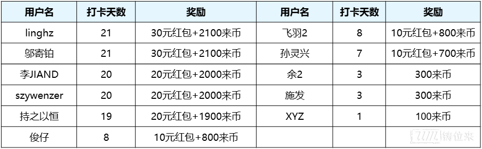 在刚刚过去的十一月,我们圈子里涌现了许许多多认真记录每一天的朋友。衷心感谢每一位的坚持与分享!现在,让我们公布十一月坚持完成打卡并获得奖励的伙伴们: