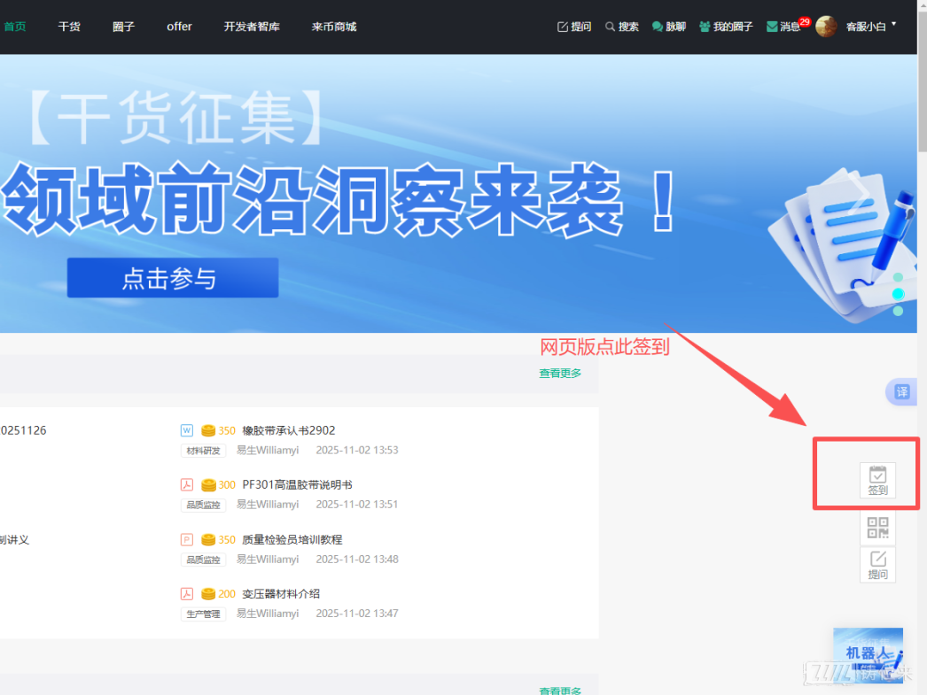 签到步骤:在首页点击“签到”按钮即可完成今日签到(如下图所示)