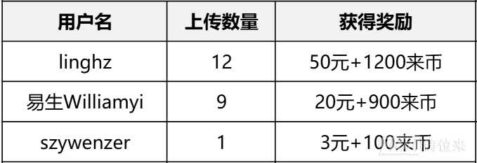 来币奖励 | >1份 | 100来币/份 |